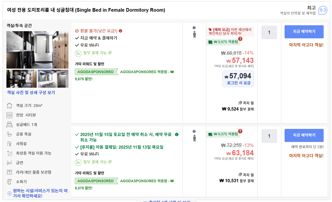 처음 호스텔을 이용한다면 브랜드 호스텔을 선택하는 게 안전해요. 청결도와 서비스 기준이 일정하고, 리뷰도 많아서 실패할 확률이 낮거든요.
