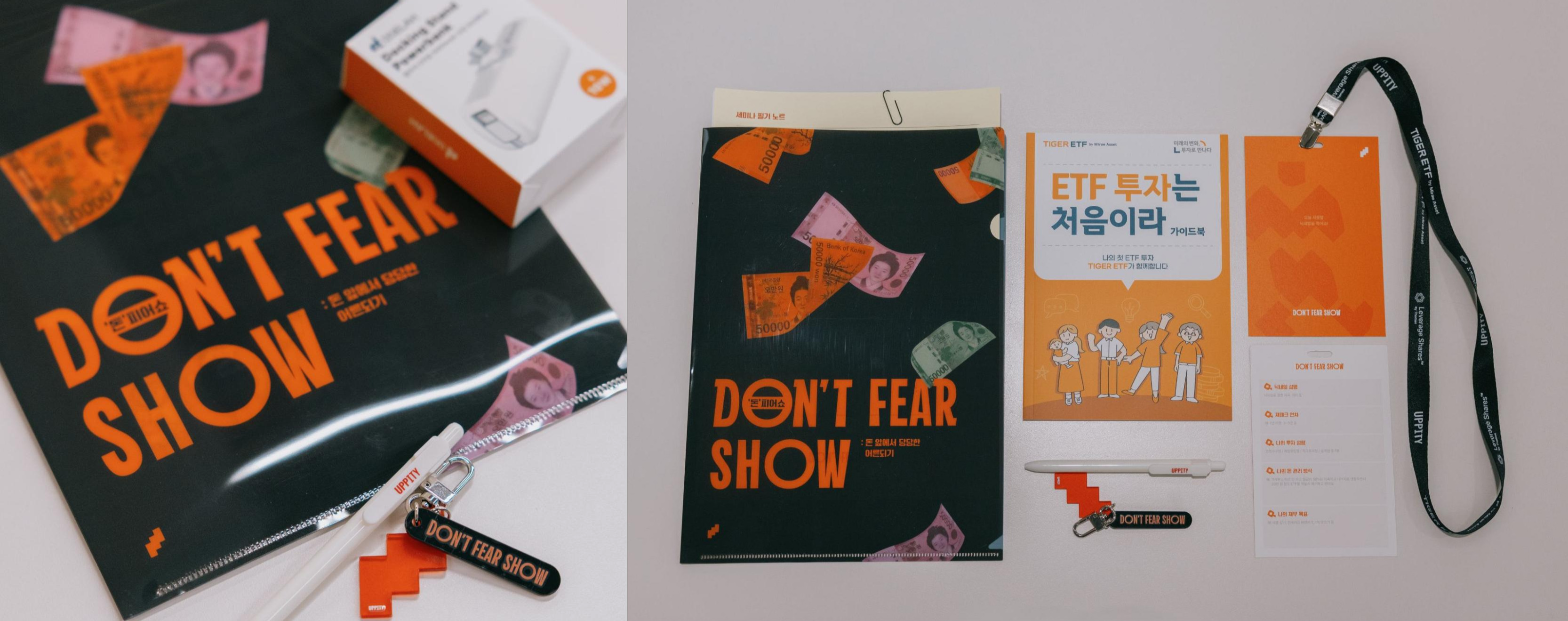 🎁 양손 무겁게 시작하는 공부: 특별 제작한 돈피어쇼 키링과 볼펜, L형 파일, 필기노트와 워크시트, 그리고 미래에셋 ETF 가이드북, 레버리지셰어즈 보조배터리까지! 든든한 구성으로 준비했어요. |