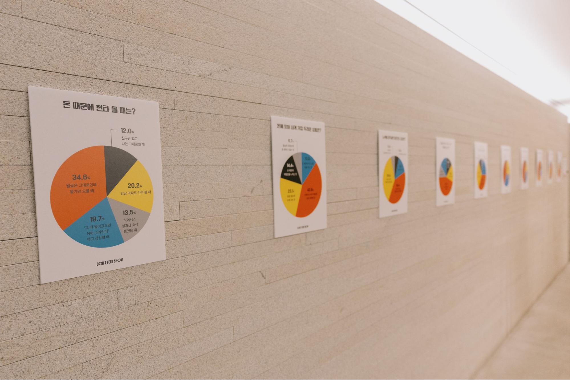 📊 참가자 서베이 전시: 세미나 신청 과정에서 참여해주신 서베이 결과를 전시로 구성했어요. 한 자리에 모인 분들의 투자 성향, 투자 경험 등을 알 수 있는 내용인 만큼 많은 분들이 흥미로워하시며 사진도 많이 찍으셨어요. 가장 반응이 뜨거웠던 문항은 <돈 때문에 현타 올 때는?>이었답니다. |