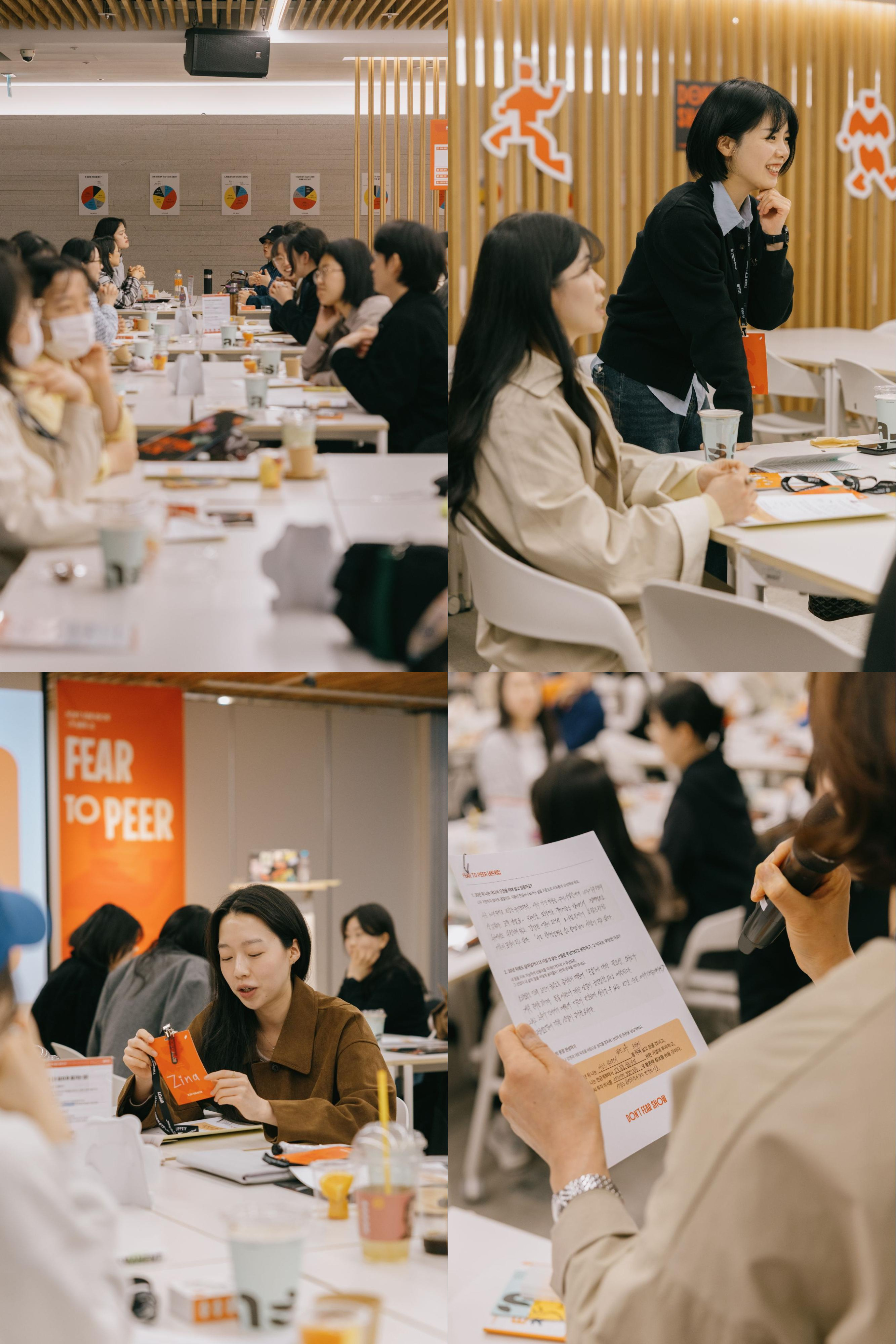 1) 동료를 만나는 시간: 명찰에 적은 닉네임, 투자 성향, 재무 목표를 바탕으로 조별 자기소개가 이어졌어요. “저는 5년 차 초보 투자자예요”, “안락한 노후를 준비하는 게 목표예요” 솔직한 대화 속에 어색함은 사라지고 어느새 장내는 웃음 소리로 가득했어요. 2) 30년 뒤 나의 모습 상상하기: 워크시트에 30년 뒤 내가 누릴 삶과 그때 유망할 것으로 예상되는 산업을 적어보았습니다. 막연했던 미래가 종이 위에 구체적으로 그려지는 순간이었죠. 3) 나만의 문장 완성: 나의 노후 목표 및 실천 문장을 완성하고 조원들과 나눌 때, 서로를 향한 박수와 응원이 끊이지 않았어요. 혼자 고민할 땐 ‘두려움(Fear)’이었지만, 함께 나누니 든든한 ‘동료(Peer)’가 생겼음을 확인하는 시간이었어요. |