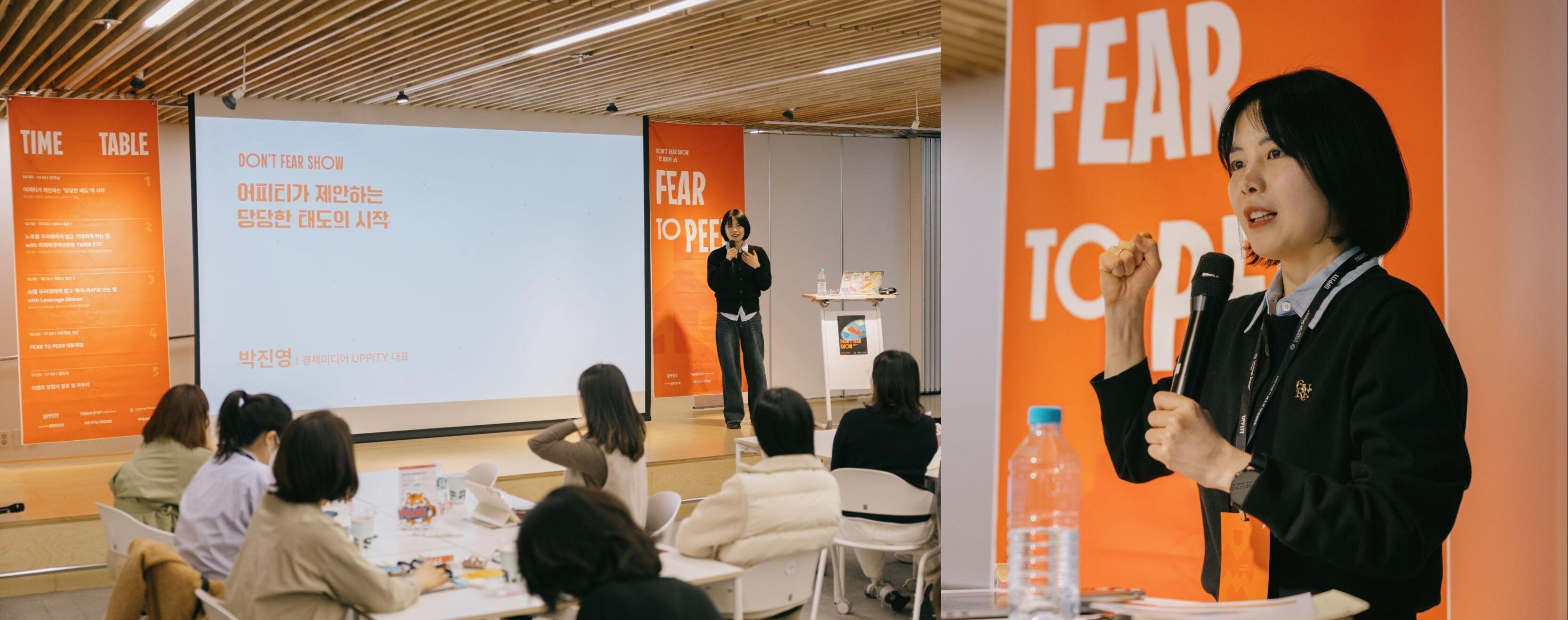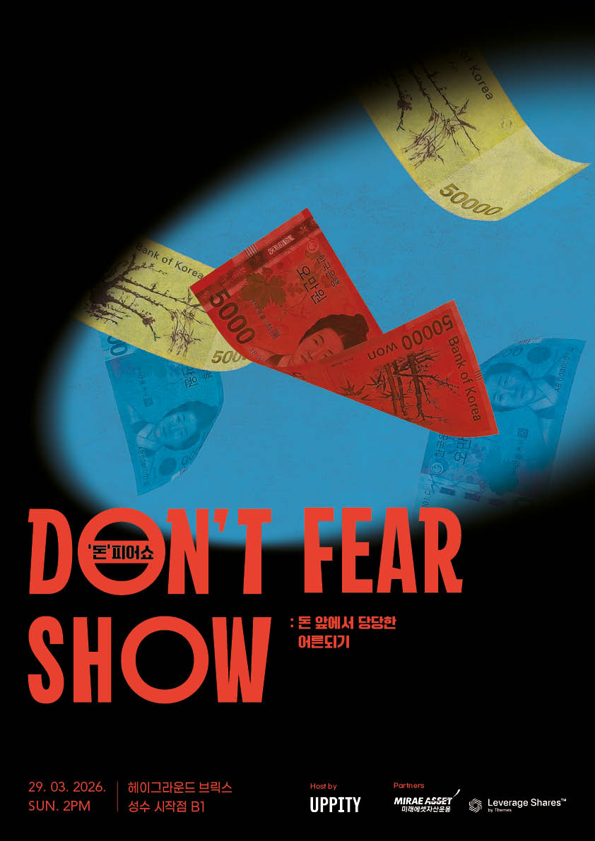 어피티는 ‘2030여성이 돈 앞에서 당당한 태도를 갖게 하는 것’을 목표로 시작된 경제 미디어예요. 우리 세대의 여성과 청년들이 돈 때문에 위축되지 않고다가올 미래를 두려움이 아닌 기대로 채우길 바라는 마음에서 경제 콘텐츠를 발행해왔어요. 하지만 정보를 아는 것만으로 해결되지 않는 지점이 있죠. 무엇을 모르고 있는지 몰라 느끼는 막연함, 남들과의 비교에서 오는 불안함. 우리 모두가 한 번쯤 느껴봤을 두려움일 거예요. 독자분들의 고민을 가까이에서 들어온 어피티는, 두려움을 정면으로 마주하고 돈 고민을 편하게 털어놓을 수 있는 안전한 연결의 자리를 만들고 싶었어요. 오프라인에서만 접할 수 있는 깊이 있는 강연과 함께요. 기획 끝에 <Don’t Fear Show: 돈 앞에서 당당한 어른 되기>가 탄생했어요. 두려워하는 대신(Don’t Fear), 제대로 마주하고 쇼(Show)처럼 즐기자는 마음을 담았습니다. |