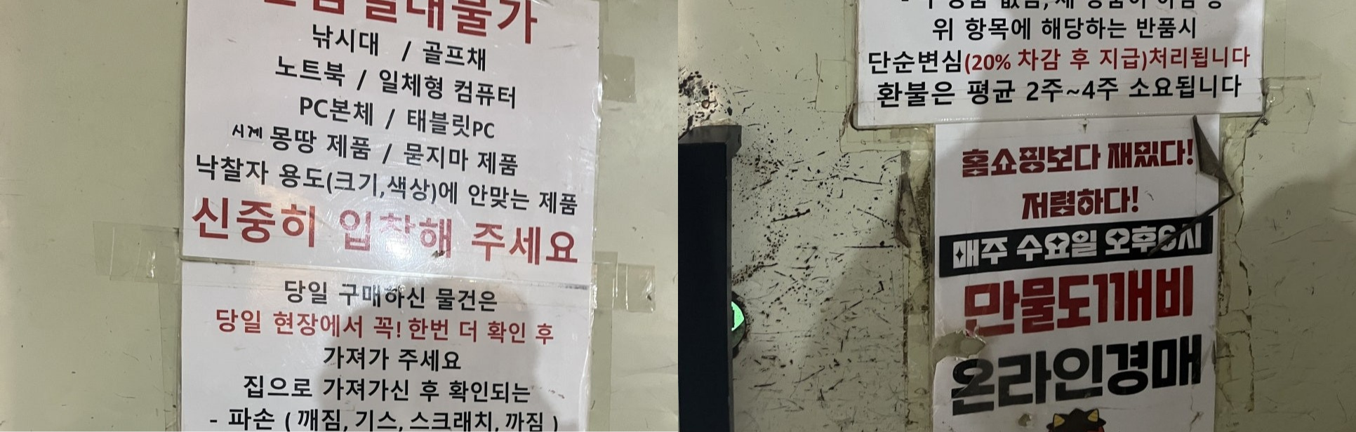 • 제1관 현장 중고만물경매: 매주 매일 365일 오전11시부터(제1관 도깨비경매장)