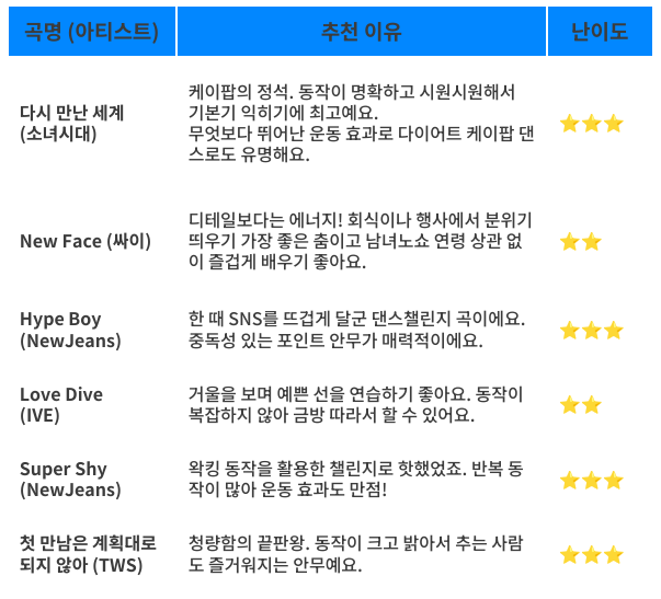 특히 노래의 가사와 분위기에 맞춘 후렴구 동작과 표정, 제스처는 케이팝 댄스를 더욱 매력적으로 만드는 결정적인 포인트라고 할 수 있어요.