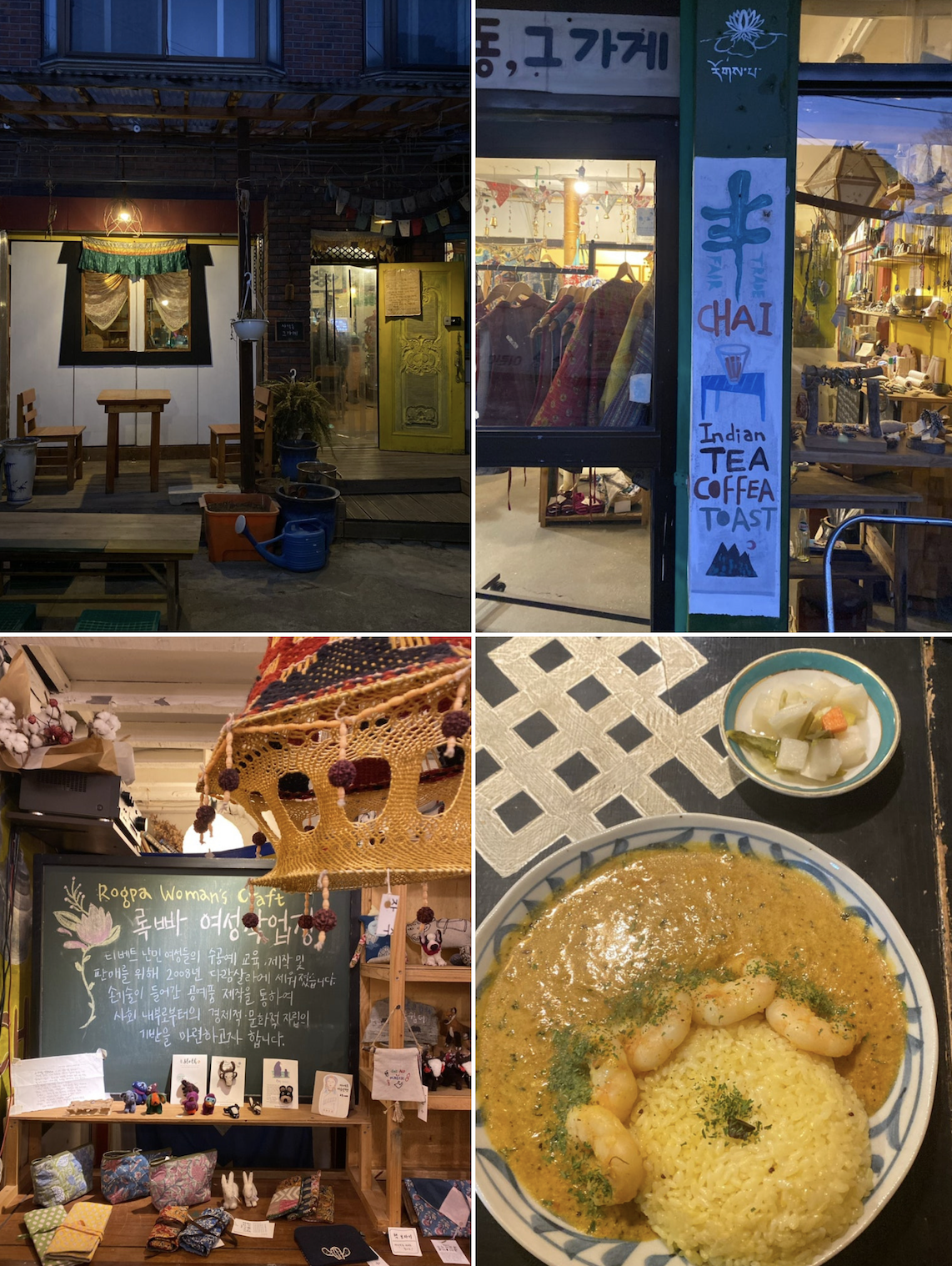 티베트 난민들의 자립을 돕는 NGO 단체 ‘록빠’에서 운영해서 모든 스태프가 자원봉사자로 활동한다는 점이 인상적이더라고요. 이곳은 문을 열자마자 느껴지는 진한 커리 향과 이국적인 소품들이 마치 인도 어느 게스트하우스에 온 듯한 착각을 주는데요. 인도에서 수입한 인센스 스틱이나 수공예 액세서리도 판매하니 구경하는 재미가 쏠쏠해요.
