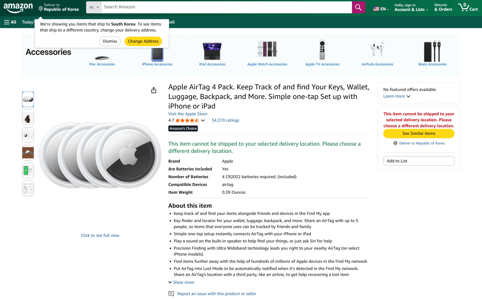특히 세일 반영이 잘 되는 지역은 대도시 + 소비 중심지인데 추천 ZIP코드는 인구 밀집 지역이라 프로모션이 많고 대부분의 할인이 다 보이는 뉴욕(ZIP: 1000)과 서부 최대 도시 LA(ZIP: 90001) 등이 있어요. 참고로, ZIP 코드는 가격 확인용으로만 활용하시고 결제할 때는 진짜 배송지를 입력하셔야 해요.
