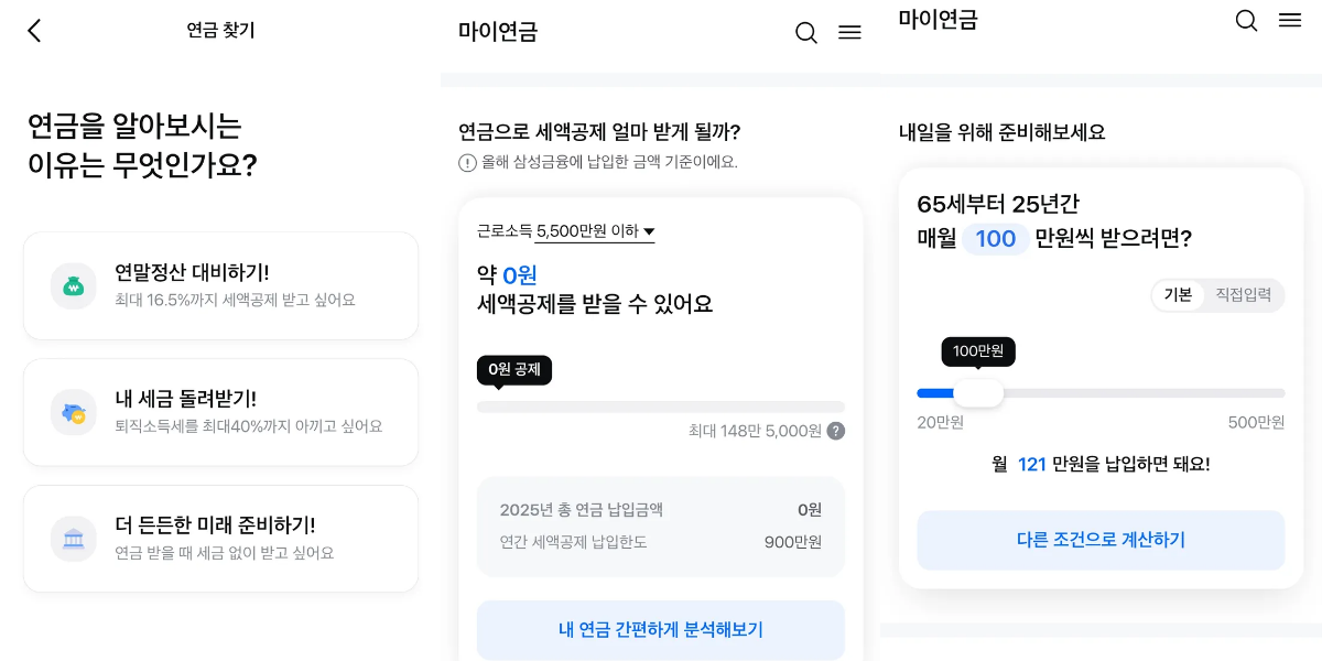 โ€œ๋„๋Œ€์ฒด ์–ด๋–ค ์—ฐ๊ธˆ๋ถ€ํ„ฐ ๊ฐ€์ž…ํ•ด์•ผ ํ• ๊นŒ?โ€, โ€œ์—ฐ๋ง์ •์‚ฐ ๋•Œ ์–ผ๋งˆ๋‚˜ ์„ธ์•ก๊ณต์ œ ๋ฐ›์„ ์ˆ˜ ์žˆ์ง€?โ€, โ€œ๋งค๋‹ฌ ์–ผ๋งˆ์”ฉ ๋„ฃ์–ด์•ผ ๋‚˜์ค‘์— ์›ํ•˜๋Š” ๊ธˆ์•ก์„ ์ˆ˜๋ นํ•  ์ˆ˜ ์žˆ์„๊นŒ?โ€… ๊ณ ๋ฏผ๋˜์‹ ๋‹ค๋ฉด? โ€˜๋งˆ์ด์—ฐ๊ธˆโ€™ 3์ข… ์„ธํŠธ๋ฅผ ํ™œ์šฉํ•ด๋ณด์„ธ์š”.