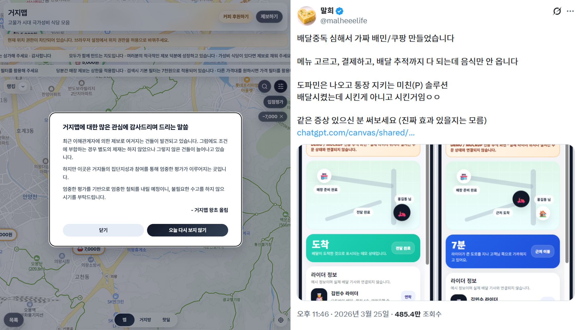 ์์ฆ โ๊ฑฐ์ง๋งตโ์ด ์ธ๊ธฐ๋ผ๊ณ ํด์. ์๋ก ์ ์ฝ ํ์ ๋๋๋ ์คํ์นด์นด์คํก โ๊ฑฐ์ง๋ฐฉโ์์ ์์๋ ๊ฑด๋ฐ์. ๊ฑฐ์ง๋ฐฉ์ ์์๋ ํ ์ง์ฅ์ธ์ด ์ง๋จ์ง์ฑ์ผ๋ก ์์ ์ ๋๋ค์์ 3์ฒ ์๋๋ถํฐ 1๋ง ์ ์ดํ ์๋น๋ง ๋ชจ์ ์ง๋ ํํ๋ก ์ ๋ฆฌํ๋ค๊ณ ํด์. ์ปค๋ฎค๋ํฐ์๋ ์ค์ ๋ฐฉ๋ฌธ ํ๊ธฐ์ ๋ค์ํ ์ ์ฝ ํ๋ ํจ๊ป ์์ด๊ณ ์๊ณ ์. ๊ณ ์ PD๋ ์ง ๊ทผ์ฒ์ ์ง์ฅ๋ฉด 3,900์์ง๋ฆฌ ๊ตญ์ซ์ง์ด ๋ฑ๋ก๋์ด ์๋ ๊ฑธ ๋ณด๊ณ ์กฐ๋ง๊ฐ ๊ฐ๋ณผ ์๊ฐ์ด์์.