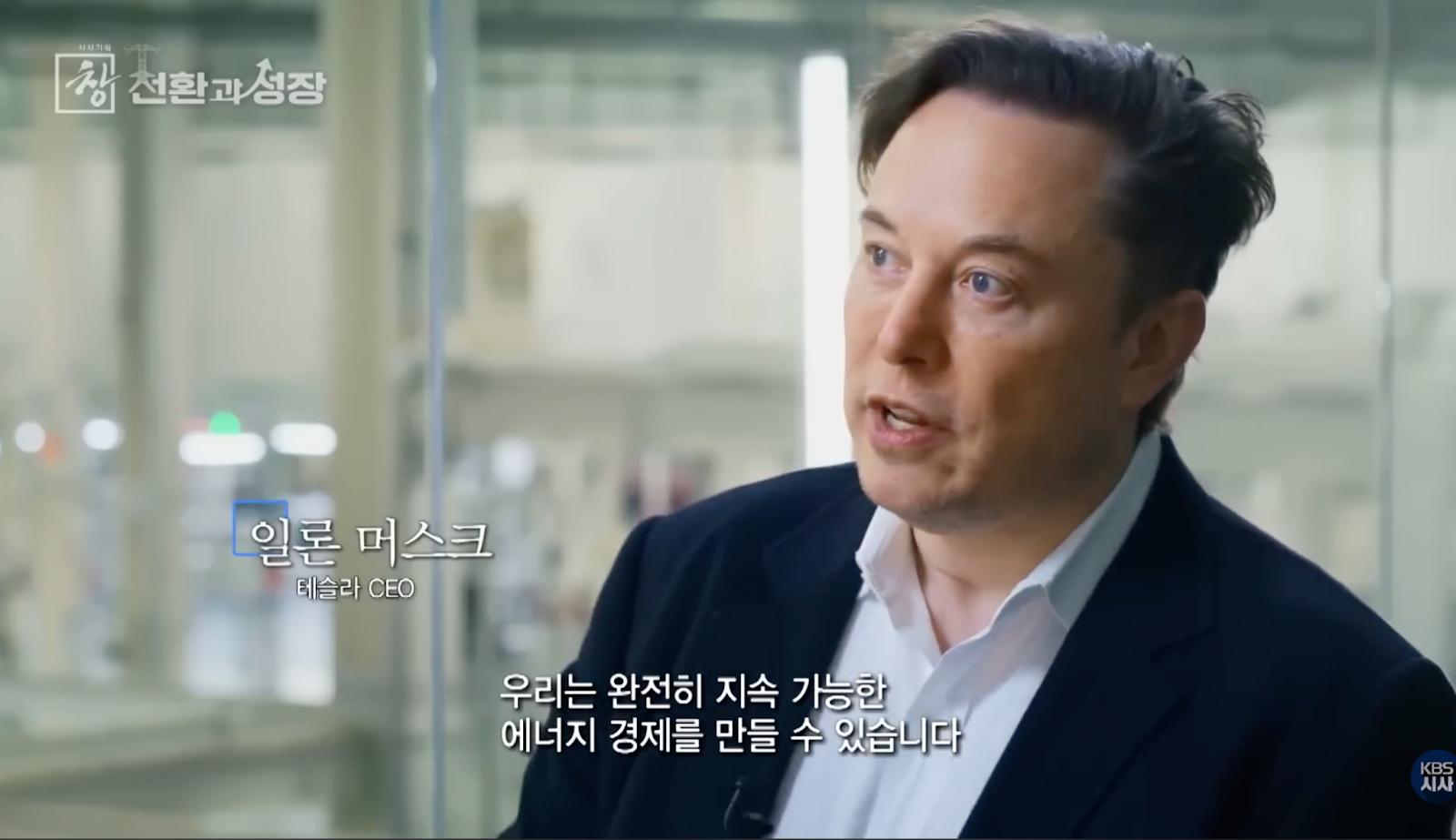 이미지 출처: Elon Musk: A future worth getting excited about | TED 머스크가 언급한 지속 가능한 에너지, 바로 재생에너지를 뜻하죠. 그는 핵심이 ‘세 가지’라고 말해요. - 태양광과 풍력 발전