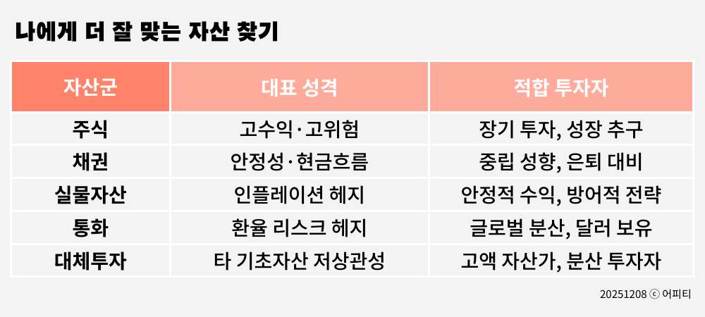 ๋ค์ฏ ๊ฐ์ง ๊ธฐ์ด์์ฐ์ ์กฐํฉํ๋ ๋ฐฉ์์ ๋ฐ๋ผ ๋ฆฌ์คํฌ์ ์์ต์ด ์์ ํ ๋ฌ๋ผ์ ธ์. ํฌํธํด๋ฆฌ์ค๋ ๋จ์ํ ์ฌ๋ฌ ์์ฐ์ ๋์ดํ๋ ๊ฒ์ด ์๋๋ผ, ๋์ ์์ ์ฃผ๊ธฐยท์์ฅ ํ๊ฒฝยท์ฌ๋ฆฌ ์ํ๊น์ง ๋ฐ์ํด โ์ง์ ๊ฐ๋ฅํ ํฌ์โ๋ฅผ ๊ฐ๋ฅํ๊ฒ ๋ง๋๋ ์ ๋ต์ ๋๊ตฌ์์. ์ด์ ๊ฐ ๊ธฐ์ด์์ฐ์ ๋ํ ๊ธฐ๋ณธ์ ์ธ ์ดํด๋ฅผ ๋ง์ณค์ผ๋, ์ด๋ป๊ฒ ์์ง์ฌ ๊ฐ์ง ๊ฒฐ์ ํ๋ ์ผ๋ง ๋จ์๋ค์. ๐ฅฐ