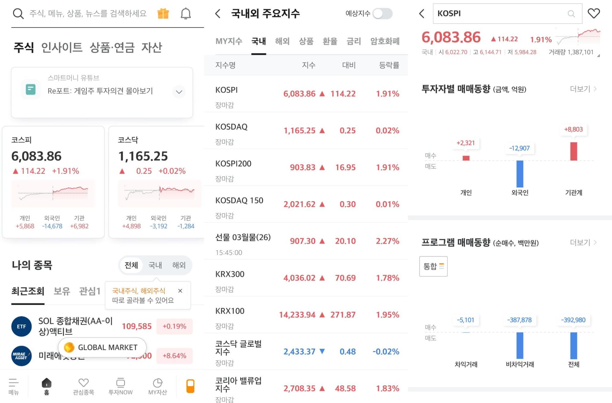 2030 투자자들이 많이 사용하는 증권사 세 곳에서 국내 지수의 수급을 확인하는 방법을 알려드릴게요.