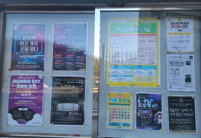 북 큐레이션은 사서가 주제를 정해 책을 선별해 독자와 연결해 주는 서비스예요. 선별된 책들은 이렇게 포스터나 카드뉴스를 통해 이용자에게 소개된답니다. 사실 저도 팀 봉사활동으로 저도 북 큐레이션을 만든 적이 있는데요, 청룡의 해가 시작되던 2024년 1월, ‘청룡의 비상’이라는 주제로 팀원들과 함께 관련 도서를 선별했었어요. 새해 목표를 작성하여 붙이면 캡슐 뽑기를 진행할 수 있도록 프로그램도 진행했습니다. 청소년들에게 뜨거운 관심을 받아 아주 기뻤던 기억이 나요.