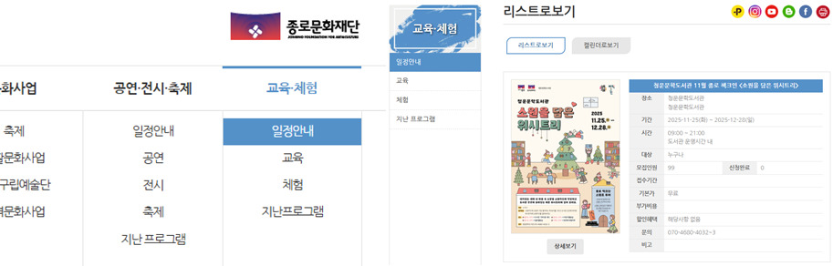 먼저, 원하는 지역의 ‘문화재단’을 검색해보세요. 대부분의 지자체는 문화재단을 운영하고 있고, 도서관은 이 문화재단 산하에 있는 경우가 많아요. 거기서 각종 전시, 공연, 강좌, 축제 정보를 한눈에 볼 수 있어요. 문화재단에서는 도서관뿐만 아니라 문학관, 미술관 등 다른 기관의 프로그램도 볼 수 있다는 점이 특히 좋아요.